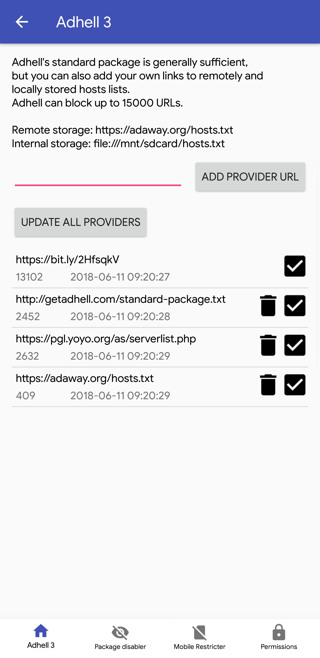 Note that, you will have to disable and re-enable KNOX based Ad Blockers on Samsung. Also, note that the more URLs the provider has, the longer it will take to enable Adhell or SABS. So keep the list to minimum.